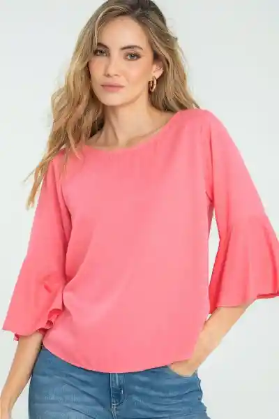 En Chalis Fondo Entero Cuello Redondo Con Botón y Abertura en Espalda Manga Tres Cuartos Bolero Silueta Amplia.
