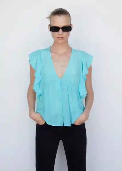 Cierre de Botones en la Parte Delantera Cuello Pico Detalle de Volantes Diseño Recto Disponible Plus Looks de Oficina Sin Mangas Tejido Fluido - 57012895_52.