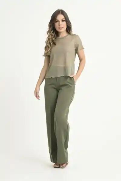 En Mesh Tejido de Punto Fondo Entero Con Brillo Cuello Redondo Manga Corta Terminación en Ruedos de Minifilete.