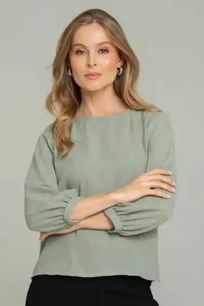 En Tejido Plano Especial Tipo Lino Fondo Entero Ecote Redondo Con Abertura en Centro Posterior Con Botón de Ajuste de 18L Manga 3/4 Con Puño Con Recogido Suave y Parejo Aberturas a Lado y Lado Del Ruedo Silueta Semi Ajustada.