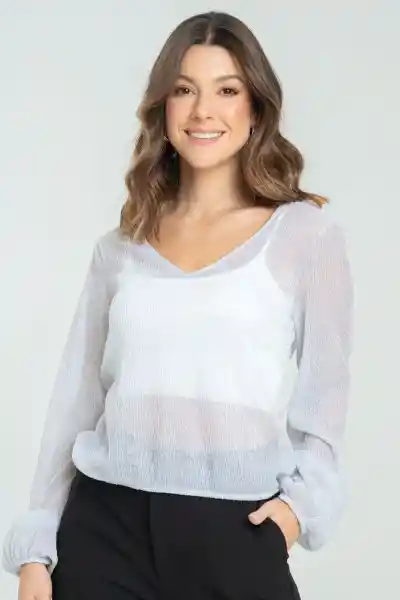 En Tejido Plisado Escote en V Manga Larga Con Elástico de 1 cms en Puño y Ruedo.