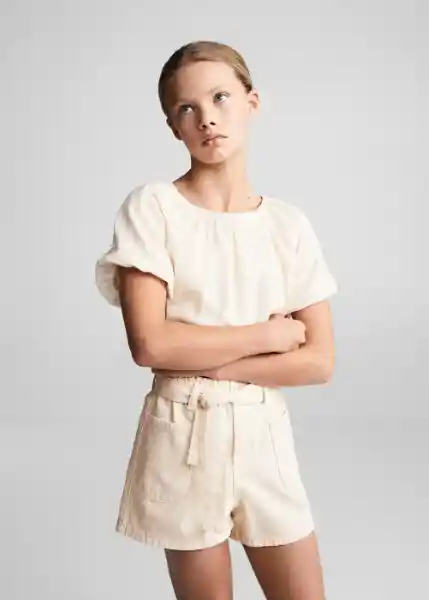 Cierre de Botón en la Parte Posterior Detalle de Lúrex Diseño Crop Manga Abullonada Manga Corta Tejido de Algodón Tejido Ligero - 67086025_85.