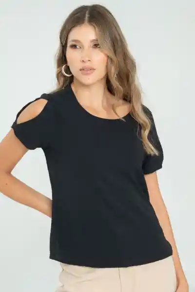 En Tejido Plano Fondo Entero Cuello Redondo Sesgado Manga Corta Doble Unida Con Pespunte Aberturas Laterales Silueta Semi Ajustada.
