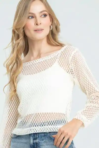 Tejida Escote Barco Manga Larga Con Puño Silueta Amplia.
