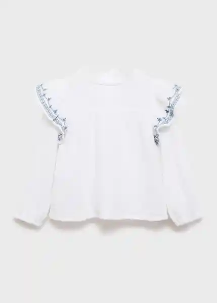 Cuello Redondo Con Cierre de Botón Detalle Bordado en Los Volantes Diseño Evasé Manga Larga Puños Elásticos Tejido 100% Algodón Tejido de Bambula Volantes en Las Mangas - 17064424_01.