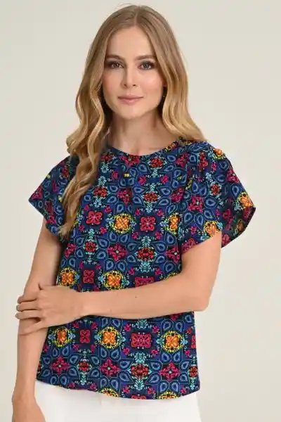 En Crepe Estampado Escote Redondo Manga Corta Bolero.