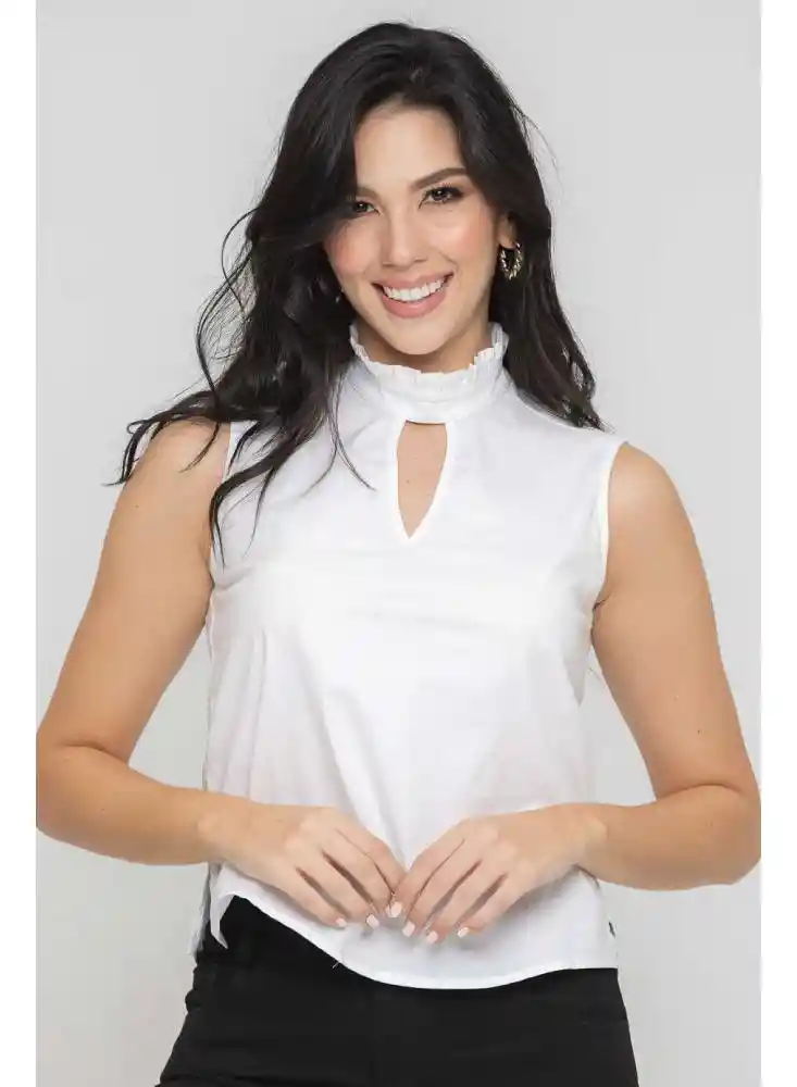 Popelina Fondo Entero Cuello Redondo Con Rouche y Abertura en Espalda Escote Frontal Manga Sisa.