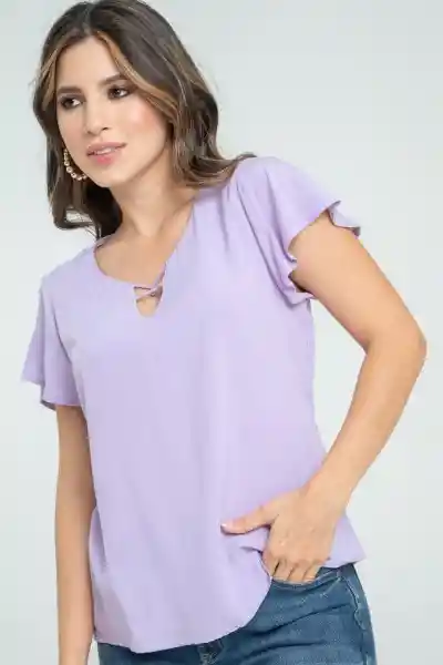 En Tejido Plano Fondo Entero Cuello Redondo Con Escote en V Con Falso Con Detalle de Sesgos Pitillo Entrelazados en el Escote Manga Corta Con Ruedo de 1 cm Espalda Lisa Silueta Semi Ajustada.