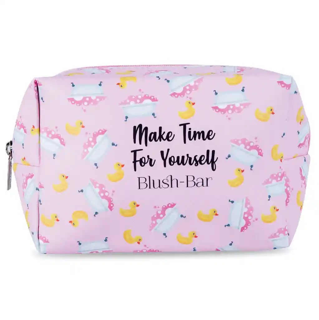 Qué es: Una cosmetiquera grande para guardar tus productos favoritos (incluyendo los de cuidado de piel) de manera organizada! Su diseño es muy tierno, con paticos de baño y tinas de burbujas. Además tiene la frase "Make Time For Yourself", porque nos encanta que dediques tiempo para ti y te consientas! Es resistente y tiene un forro interno por si se te riega algo. Llévala de viaje con todos tus productos favoritos! Esta cosmetiquera mide 17cm ancho x 12cm alto x 10cm profundo. Modo de Uso: Úsala para guardar tus productos favoritos de maquillaje y cuidado de piel. Por qué nos encanta: • 100% Cruelty Free
