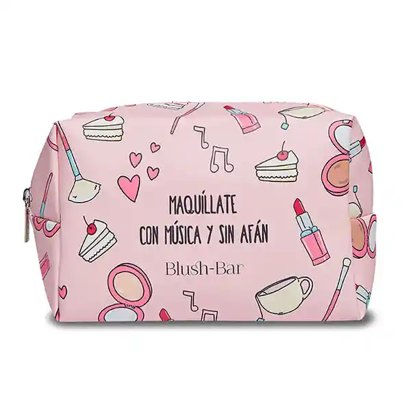 Qué es: Una cosmetiquera grande para guardar tus productos favoritos de manera organizada. Esta cosmetiquera nos recuerda que debemos disfrutar el momento de maquillarnos con la frase “Maquíllate con música y sin afán”. Tiene dibujos de postres deliciosos, notas de música y es rosada divina. Esta bolsa de maquillaje tiene el tamaño ideal para llevarla de viaje o transportarla en cualquier cartera. Llévala a todas partes y retoca tu maquillaje en cualquier momento. Esta cosmetiquera mide 17cm ancho x 12cm alto x 10cm profundo Modo de uso: Úsala para guardar tus productos favoritos de maquillaje y cuidado de piel. Por qué nos encanta: • 100% Cruelty Free • Tiene dibujos divinos y es rosada Blush-Bar!