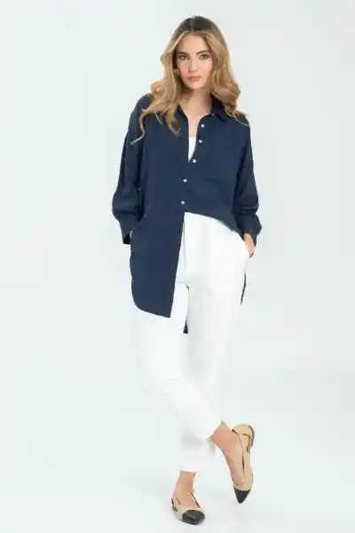En Chalis Fondo Entero Cuello Camisero Perilla Completa Bolsillo Manga 3/4 Con Botón en Puño Almilla en Espalda.