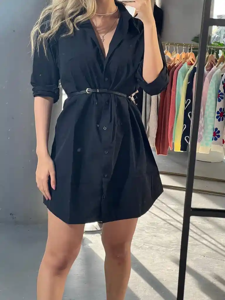 Camisa larga de botones, manga larga y cuello, agrega un cinturón delgado y dale estilo a tu look o llévalo abierto con un crop top debajo! Talla única ideal talla S o M. *No incluye cinturón.