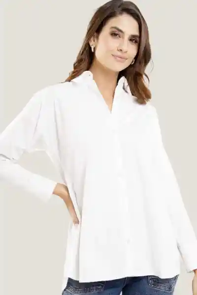 En Popelina Fondo Entero Cuello Camisero Perilla Completa Con Botones Manga Larga Con Botones en Puño Detalle de Abertura y Sesgo en Espalda Para Anudar.