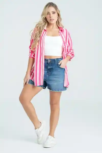 En Chalis Estampado Con Cuello y Perilla Manga Larga Con Puño Silueta Amplia.