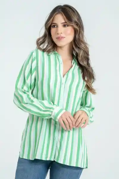 En Chalis Estampado Con Cuello y Perilla Manga Larga Con Puño Silueta Amplia.