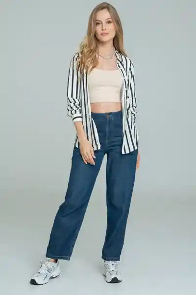 En Chalis Estampado Rayas Con Cuello y Perilla Completa de Botones 18L Manga Larga Con Puño y Botones 18L Bolsillo en Costado Delantero Aberturas en Laterales a Lado y Lado Del Ruedo Silueta Amplia.