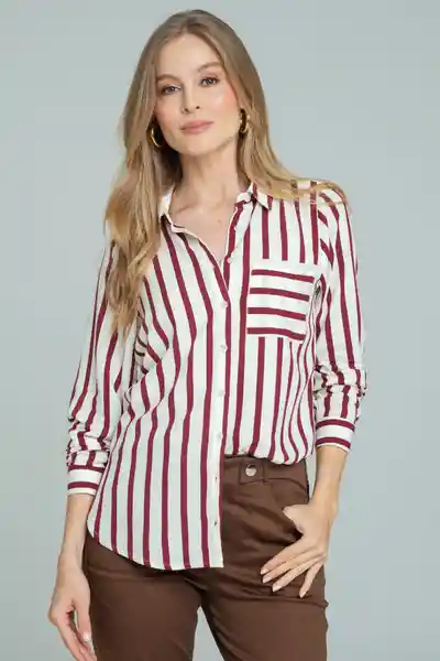 En Chalis Estampado Rayas Con Cuello y Perilla Completa de Botones 18L Manga Larga Con Puño y Botones 18L Bolsillo en Costado Delantero Aberturas en Laterales a Lado y Lado Del Ruedo Silueta Amplia.