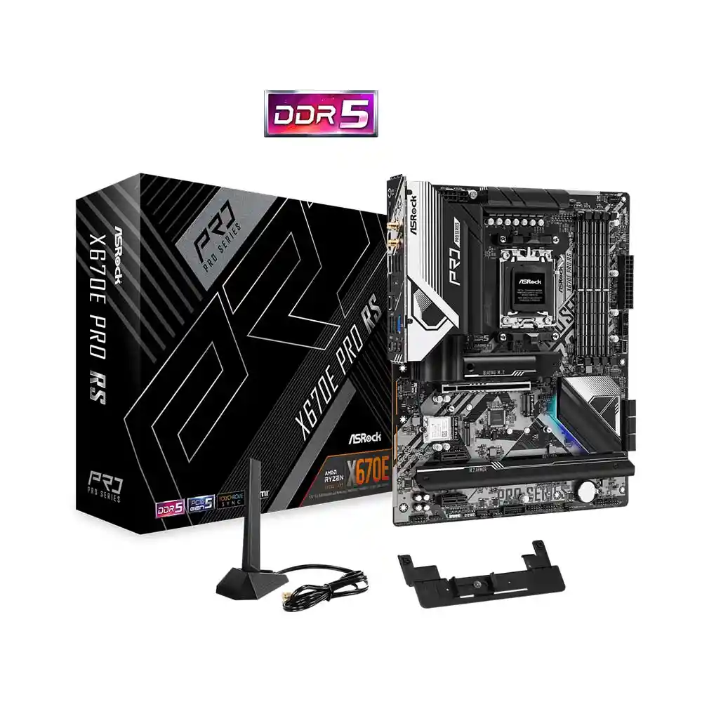 Especificaciones: CPU: AMD Ryzen 4ta Gen. Chipset: AMD X670 Memoria: 4x DDR5 Máx.128GB Ranuras De Expansión: 1x PCIe 5.0 x16 Slot (PCIE1), Soporta modo x16 2x PCIe 4.0 x1 Slots (PCIE2 y PCIE3)* 1x Socket M.2 (Key E), soporta modulo WiFi/BT PCIe WiFi tipo 2230 Almacenamiento: 1x Blazing Socket M.2 (M2_1, Key M), modo Soporta tipo 2280 PCIe Gen5x4 (128 Gb/s) 1x Hyper Socket M.2 (M2_2, Key M), Soporta tipo 2260/2280 Modo PCIe Gen4x4 (64 Gb/s) 1x Socket M.2 ( M2_4, Key M), modos Soporta tipo 2242/2260/2280 SATA3 6.0 Gb/s y PCIe Gen3x2 (16 Gb/s) 6x conectores SATA3 de 6.0 Gb/s Panel I/O Trasero: 2x Puertos de antena 1x puerto HDMI 1x DisplayPort 1.4 1x Puerto de salida Óptico SPDIF 1x puerto USB 3.2 Gen2 Type-A (10 Gb/s) (ReDriver) 1x puerto USB 3.2 Gen2 Type-C (10 Gb/s) (ReDriver) 4x puertos USB 3.2 Gen1 4x puertos USB 2.0 1x Puerto RJ-45 1x Interruptor Flashback del BIOS 1x Line Out Jack (Gold Audio Jack) 1 conector de entrada de micrófono (conector de audio dorado) Soporte OS: Windows 11 64-bit Windows 10 64-bit Factor de forma: ATX Garantía: 12 Meses