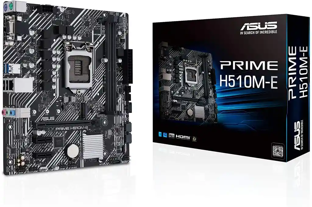 la garantía de 6 meses por defectos de fábrica no cubre daños ocasionados por el mal manejo de los equipos, ni daños ocasionados por golpes, daños eléctricos y averías causada por la lluvia, boards intel deben tener los pines del procesador en perfecto estado tal cual se envió o no se recibirá garantía no se dará garantía sin empaques y accesorios originales. Las placas base de la serie ASUS Prime están diseñadas por expertos para liberar todo el potencial de los procesadores Intel® de décima y undécima generación. Con un diseño de energía robusto, soluciones de enfriamiento integrales y opciones de ajuste inteligentes, PRIME H510M-E ofrece a los usuarios diarios y a los constructores de PC DIY una gama de opciones de ajuste de rendimiento a través de funciones de software y firmware intuitivas. Características: Zócalo Intel® LGA 1200: listo para procesadores Intel® de 11.a y 10.a generación Conectividad ultrarrápida: PCIe 4.0, ranura M.2 de 32 Gbps, Intel® 1 Gb Ethernet y USB 3.2 Gen 1 Tipo A Refrigeración completa: disipador de calor PCH y Fan Xpert 5X Protection III: múltiples protecciones de hardware para una protección completa Especificaciones: Procesador Fabricante de procesador: Intel Socket de procesador: LGA 1200 Procesador compatible: Intel® Celeron®, Intel® Core™ i3, Intel Core i5, Intel Core i7, Intel Core i9, Intel® Pentium® G Sockets de procesador soportados: LGA 1200 (Socket H5) Memoria tipos de memoria compatibles: DDR4-SDRAM Número de ranuras de memoria: 2 Tipo de ranuras de memoria: DIMM Canales de memoria: Dual-channel No ECC: Si Velocidades de reloj de memoria soportadas: 2133,2400,2666,2800,2933,3200 MHz Memoria interna máxima: 64 GB Memoria sin buffer: Si Reguladores del almacenaje Tipos de unidades de almacenamiento admitidas: HDD & SSD Interfaces de disco de almacenamiento soportados: M.2, Serial ATA III Número de unidades de almacenamiento compatibles: 5 Gráficos Soporte para proceso paralelo: No compatible Máxima resolución: 4096 x 2304 Pixeles Interno I/O USB 2.0, conectores: 2 Conectores USB 3.2 Gen 1 (3.1 Gen 1): 1 Número de conectores SATA III: 4 S/PDIF, conector de salida: Si Conector de audio en panel frontal: Si Conector de potencia ATX (24 pines): Si Conector de ventilador CPU: Si Número de conectores a ventilador de chasis: 1 Conector de energía EPS (8-pin): Si Número de conectores COM: 1 Conector TPM: Si Conector eléctrico de 12 V: Si Conector para tiras LED RGB: Si Panel trasero Puertos de I/O (entrada/salida) Cantidad de puertos USB 2.0: 2 Cantidad de puertos tipo A USB 3.2 Gen 1 (3.1 Gen 1): 2 Ethernet LAN (RJ-45) cantidad de puertos: 1 Puerto de ratón PS/2: 2 Cantidad de puertos VGA (D-Sub): 1 Número de puertos HDMI: 1 Versión HDMI: 2.0 Cantidad de DisplayPorts: 1 Versión de DisplayPort: 1.4 Salidas para auriculares: 3 Conector USB: USB tipo A Conexión Ethernet: Si Tipo de interfaz ethernet: Gigabit Ethernet Controlador LAN: Intel® I219-V Conexión de redes: Si Wifi: No Características Chipset: Intel H510 Chip de sonido: Realtek ALC887 / Realtek ALC897 Canales de salida de audio: 7.1 canales Componente para: PC Factor de forma: micro ATX Familia del chipset: Intel Sistema operativo Windows soportado: Windows 10 x64 Ranuras de expansión PCI Express x1 (Gen 3.x) ranuras: 2 Ranuras PCI Express x16 (Gen 4.x): 1 Número de ranuras M.2 (M): 1 BIOS Tipos de BIOS: UEFI AMI BIOS, tamaño de memoria: 128 MB/s Jumper Clear CMOS: Si Peso y dimensiones Ancho: 226 mm Profundidad: 211 mm Contenido del embalaje Cables incluidos: SATA Controladores incluidos: Si