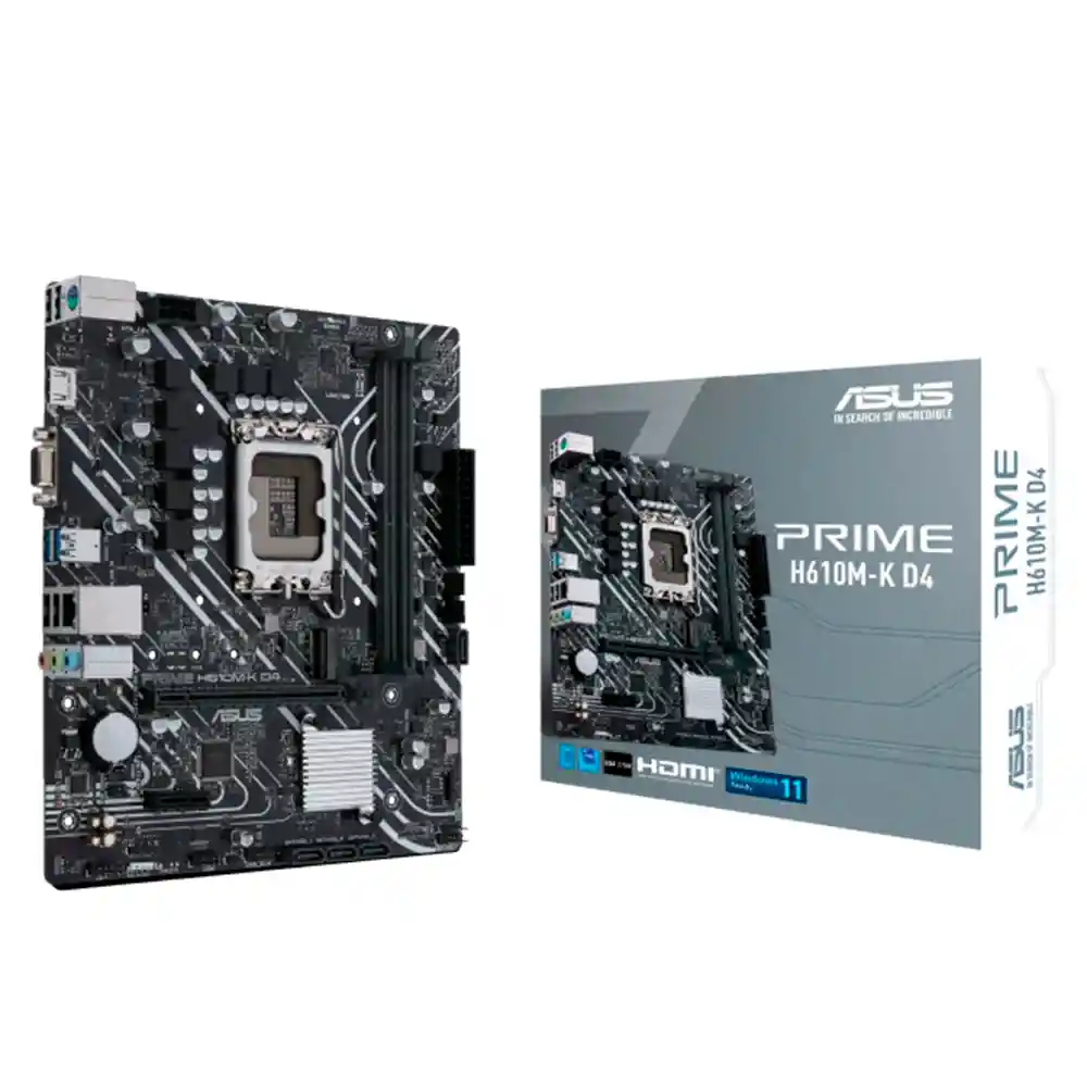 Esta placa base mATX con chipset Intel H610 es compatible con procesadores Intel Core de 12ª a 14ª gen. Soporta hasta 64 GB de RAM DDR4 (3200 MHz OC) y cuenta con un slot PCIe 4.0/3.0 x16 para gráficas, y uno PCIe 3.0 x1 para expansión. Incluye 1 ranura M.2 (PCIe 3.0 x4/SATA) y 4 puertos SATA para almacenamiento. Ofrece buena conectividad: 2 USB 3.2 Gen 1, 4 USB 2.0, HDMI, D-Sub, Ethernet 1 Gb, 3 puertos de audio y PS/2. Con factor de forma mATX (23.4 x 20.3 cm), es ideal para PCs compactos, equilibrados y con opciones de expansión. Especificaciones: Procesador: Intel Core 14a, 13a 12 Chipset: Intel H610 Memoria: x2 Slots DDR4 3200 (OC) MHz 64GB Máx. Slots De Expansión: CPU 1 x PCIe 4.0/3.0 x16 Chipset 1x ranura PCIe 3.0 x1 Almacenamiento: Ranura M.2 (clave M), tipo 2242/2260/2280 (compatible con modos PCIe 3.0 x4 y SATA) 4 puertos SAT Puertos USB: USB trasero (6 puertos en total) 2 puertos USB 3.2 Gen 1 (2 x Tipo A) 4 puertos USB 2.0 (4 x tipo A) USB frontal (4 puertos en total) 1 x encabezado USB 3.2 Gen 1 admite 2 puertos USB 3.2 Gen 1 adicionales 1 x conector USB 2.0 que admite 2 puertos USB 2.0 adicionales Puertos de E/S del panel posterior 2x puertos USB 3.2 Gen 1 (2 x Tipo A) 4x puertos USB 2.0 (4 x tipo A) 1x puerto D-Sub 1x puerto HDMI® 1x puerto Ethernet Realtek de 1 Gb 3x conectores de audio 1x puerto combinado de teclado y mouse PS/2 Factor De Forma: mATX Form Factor 9,2 pulgadas x 8,0 pulgadas (23,4 cm x 20,3 cm) Garantía: 12 Meses