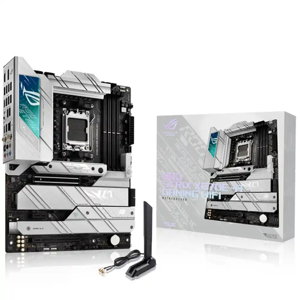 Tarjeta madre AMD X670 ATX con 16+2+2 fases de poder, soporte DDR5, un puerto PCIe® 5.0 x16 con Q-Release, cuatro puertos M.2 con disipadores térmicos, c ompatibilidad con PCIe 5.0 SSD NVMe ®, placa posterior M.2, USB 3.2 Gen 2x2, WiFi 6E integrado, Dynamic OC Switcher, Ryzen Core Flex, AI Cooling II, e iluminación Aura Sync RGB Socket AM5 de AMD para procesadores de escritorio AMD Ryzen™ serie 7000. Solución de alimentación robusta: 16+2+2 fases de poder combinadas con conectores de alimentación ProCool II de 8+8 pines, chokes de aleación de alta calidad y condensadores duraderos para admitir procesadores multinúcleo. Diseño térmico optimizado: Disipadores de calor VRM masivos más cubierta de E/S de aluminio integrada, almohadilla térmica de alta conductividad, tubo de calor en forma de L, cuatro disipadores de calor M.2 integrados y una placa posterior M.2 para la ranura M.2_1. Especificaciones: CPU: AM5 Chipset: AMD X670 Memoria: 4x DDR5 Máx.192GB 8000MHz Ranuras De Expansión: 1x PCIe 5.0/4.0/3.0 x16 slot 1x PCIe 4.0/3.0 x16 slot (supports x4 mode) 1x PCIe 3.0 x1 slot Almacenamiento: M.2_1 slot (Key M), type 2242/2260/2280 (supports PCIe 5.0 x4 mode) M.2_2 slot (Key M), type 2242/2260/2280 (supports PCIe 5.0 x4 mode) M.2_3 slot (Key M), type 2242/2260/2280/22110 (supports PCIe 4.0 x4 mode) M.2_4 slot (Key M), type 2242/2260/2280 (supports PCIe 4.0 x4 mode) 4 x SATA 6Gb/s ports Puertos USB: Traseros 1x USB 3.2 Gen 2x2 port (1 x USB Type-C®) 8x USB 3.2 Gen 2 ports (7 x Type-A + 1 x USB Type-C®) 1x USB 3.2 Gen 1 port (1 x Type-A) 2x USB 2.0 ports (2 x Type-A) Frontales 1x USB 3.2 Gen 2x2 connector (supports USB Type-C® ) 1x USB 3.2 Gen 1 header supports additional 2 USB 3.2 Gen 1 ports 2x USB 2.0 headers support additional 4 USB 2.0 ports Wireless: 2x 2 Wi-Fi 6E (802.11 a/b/g/n/ac/ax) Bluetooth v5.2 Soporte OS: Windows 11 64-bit Windows 10 64-bit Factor de forma: ATX Garantía: 12 Meses