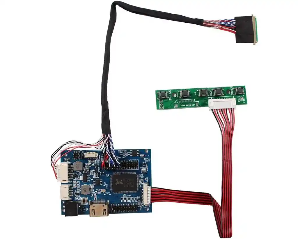 Compatible con: 7 pulgadas, 1280 x 800 pulgadas. N070ICG-LD1 (40 pines). 10.1 pulgadas, 1280 x 800 pulgadas. B101EW05 LP101WX1 HSD101PWW1 N101ICG-L21 PO101WX01 Placa de control LCD: Tablero LCD HD-MI para pantalla LCD de interfaz LVDS Adaptador de corriente de entrada: 12 V CC más de 2 A. Viene en el modelo de espera cuando no hay señal de entrada Modelo en espera <1 W. Entrada de video: HD-MI OSD: contraste de brillo, lenguaje automático, etc. Idioma: Inglés Francés Alemán Español Itali Tamaño de la tabla: 2.913 x 2.087 x 0.472 in. CON LA COMPRA LLEVA: 1 X TARJETA CONTROLADORA LVDS AZUL PCB800661V.9-1HDMI