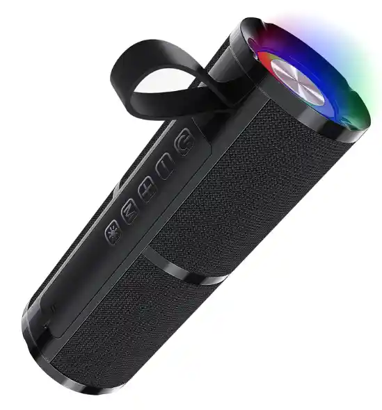 Características destacadas Conexión Bluetooth rápida y estable Duración de 4 horas continúas Tiempo de carga: 1.5 horas Entrada aux, USB, micro SD y de carga tipo V8 Función TWS (CONEXIÓN DE 2 BOCINAS AL MISMO TIEMPO) Resistente a salpicaduras Forma cilíndrica Material de PP/ABS y Tela