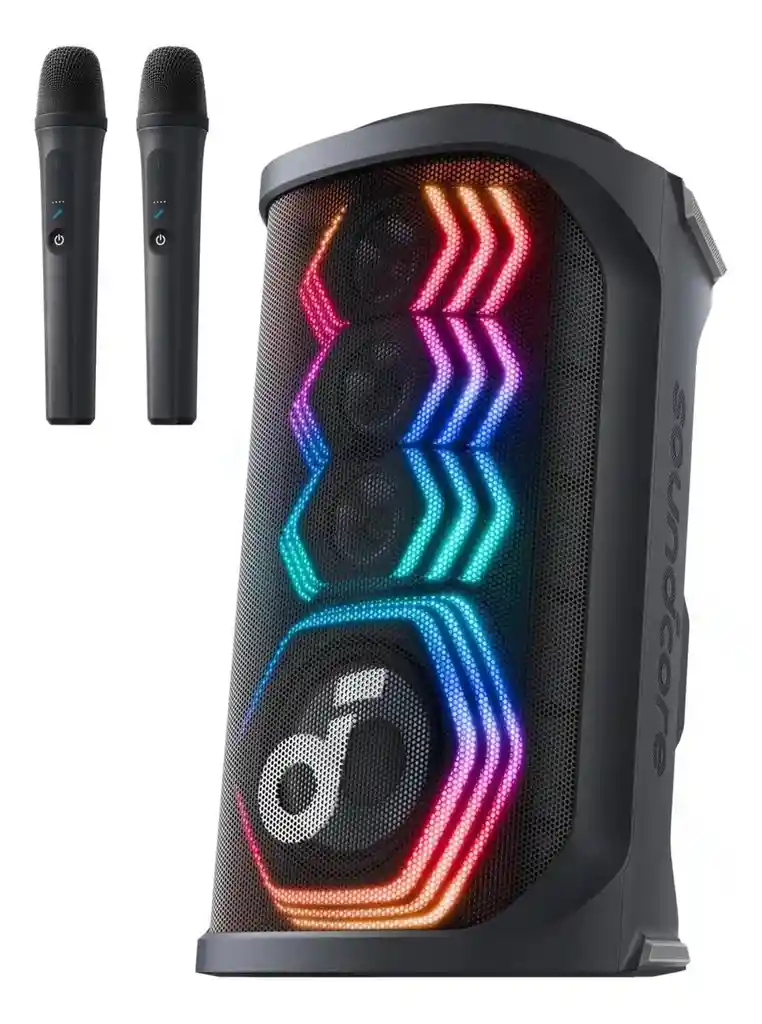 Bocina Bluetooth Soundcore Rave 3s 200w Con Karaoke 2 Micrófonos Eliminación De Voz Ai Reverb Luces Led Y 12h Batería Portátil Para Casa O Jardín Color Negro Negro