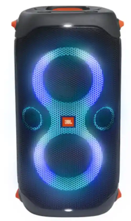 * Apto para uso en exteriores. * Es a prueba de agua. * Con conectividad bluetooth. * Tiene luces led. * Función de karaoke incorporada. * Batería recargable y cargador incluido. * Potencia de 160W. * Conector de entrada: Miniplug, USB, Plug. * Lugar de colocación: el piso y el poste. * Dimensiones: 295mm de ancho, 568mm de alto y 300mm de profundidad. * Ideal para escuchar tu música preferida *Potente sonido JBL Original Pro Tanto si estás en casa como al aire libre, el JBL PartyBox 110 hace que tu música sea increíble con dos niveles de bajos profundos y ajustables y el potente sonido JBL Original Pro. El juego de luces dinámico se sincroniza con el ritmo Cualquier tipo de música es mejor con un juego de luces dinámico. Los colores sincronizados con el ritmo hacen que quieras mover los pies, mientras que las luces estroboscópicas y patrones personalizables deslumbran la mirada. Es una experiencia audiovisual única e inmersiva que transforma cualquier fiesta en una obra de arte. 12 horas de tiempo de reproducción Anima la fiesta durante todo el día o toda la noche. Con 12 horas de tiempo de reproducción y una batería recargable integrada, el ritmo seguirá (y seguirá).