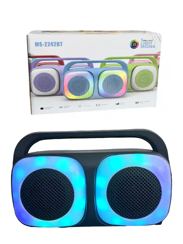 Bocina portátil impresionante dispositivo es mucho más que una simple bocina: es una obra maestra de la tecnología y el diseño que te sumergirá en un mundo de sonidos vibrantes y luces deslumbrantes. Con un diseño compacto y moderno, esta bocina 2x2" es la compañera perfecta para tus aventuras musicales. ¿Quieres escuchar tus emisoras de radio favoritas? No hay problema, gracias a su radio FM incorporada, tendrás acceso a una amplia variedad de estaciones. Con la conectividad Bluetooth, puedes sincronizar tu dispositivo y reproducir tus canciones favoritas con una calidad de sonido excepcional. Reproductor de memorias USB y micro SD, podrás llevar tu música a donde quieras sin necesidad de un dispositivo externo. Batería recargable te brinda hasta 4 horas de música ininterrumpida, para que puedas disfrutar de tu música en cualquier lugar y en cualquier momento. Sistema de luces RGB de alta tecnología transformará cualquier entorno en una pista de baile. Las luces se sincronizan con la música, creando una atmósfera visualmente impresionante que elevará tu experiencia musical a nuevas alturas.