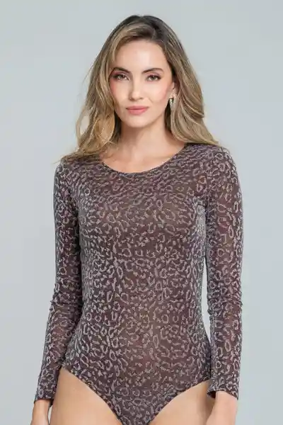 En Malla Con Brillo Animal Escote Redondo Manga Larga Broches de Ajuste en la Parte Inferior de la Tanga Silueta Ajustada.