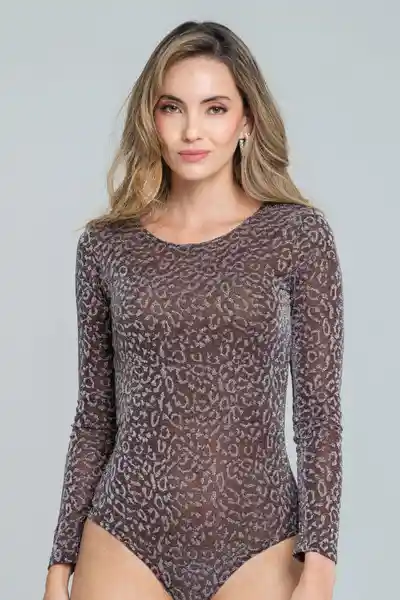 En Malla Con Brillo Animal Escote Redondo Manga Larga Broches de Ajuste en la Parte Inferior de la Tanga Silueta Ajustada.