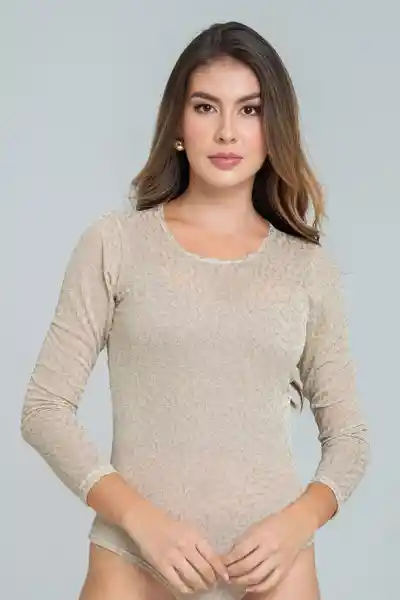 En Malla Con Brillo Animal Escote Redondo Manga Larga Broches de Ajuste en la Parte Inferior de la Tanga Silueta Ajustada.
