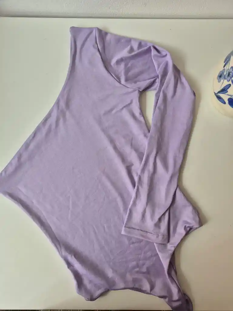 Body asimétrico, una sola manga larga. Talla única color lila.