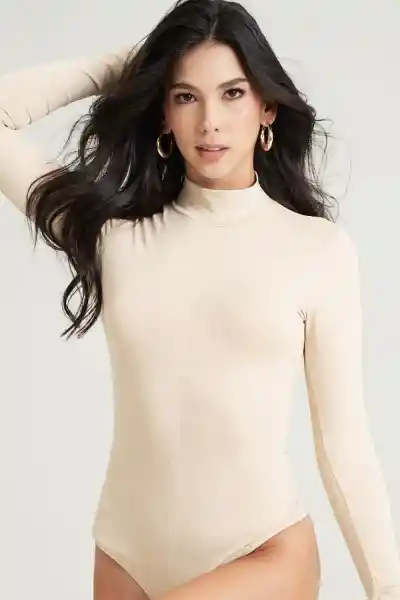 Tejido de Punto Fondo Entero Cuello Alto Redondo Manga Larga Detalle de Corte Frente.