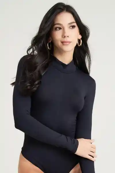 Tejido de Punto Fondo Entero Cuello Alto Redondo Manga Larga Detalle de Corte Frente.