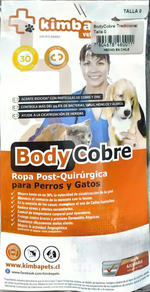 BodyCobre® Completo Postoperatorio, con las micropartículas de Copptech™ elimina significativamente las bacterias, virus, hongos y ácaros. Además trata síntomas de dermatitis atópica. Mejora el tiempo de recuperación al proporcionar una barrera contra la contaminación y la interferencia del paciente. *En la mayoría de los casos reemplaza el uso del collar isabelino, dando libertad de movimiento durante la recuperación, reduciendo efectos secundarios como el estrés en perros y gatos.