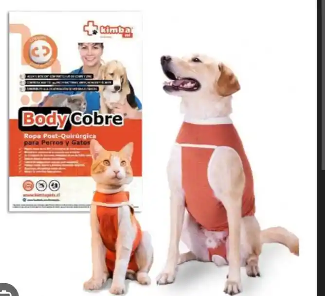 BodyCobre® Completo Postoperatorio, con las micropartículas de Copptech™ elimina significativamente las bacterias, virus, hongos y ácaros. Además trata síntomas de dermatitis atópica. Mejora el tiempo de recuperación al proporcionar una barrera contra la contaminación y la interferencia del paciente. *En la mayoría de los casos reemplaza el uso del collar isabelino, dando libertad de movimiento durante la recuperación, reduciendo efectos secundarios como el estrés en perros y gatos.