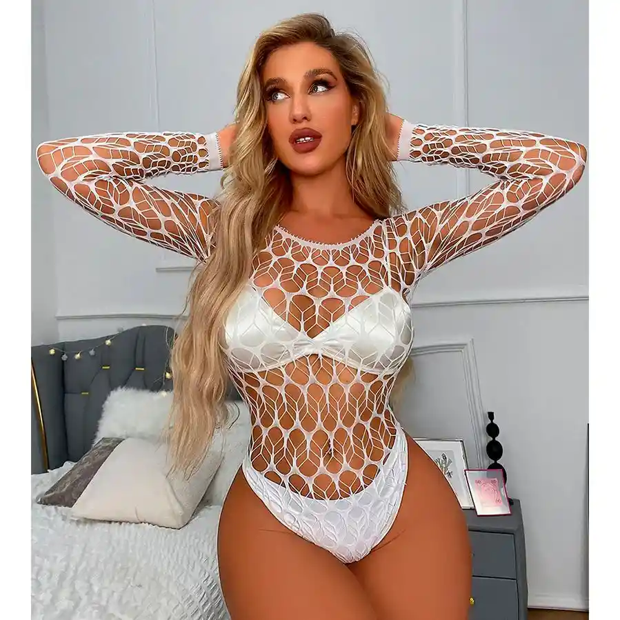 Body en malla, con orificios a su alrededor. Características: Material: 93,4% polyamide+ 6,6% Elastane Talla: Única Color: Blanco Incluye: Body en malla