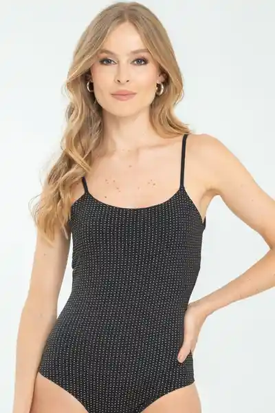En Tejido de Punto Con Detalle de Brillo Forrado de Tiras y Escote Redondo Ajusta Con Broches en la Parte Interna de la Tanga Silueta Ajustada.
