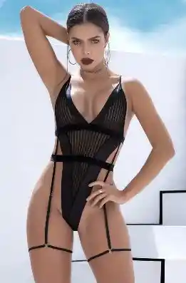 Body con escote cuello v profundo, este lindo atuendo está listo para usar en cualquier ocasión en la que quieras verte divina y fabulosa, posee rayas verticales con de talles en cuero sintético, tirantes ajustables y gancho en Z, además es abierto en la entre pierna para hacerlo todo más sencillo. Compuesto en 85 % Nailon y 15 % Elastano. Se recomienda lavar a mano y dejar secar al aire. Talla S/M