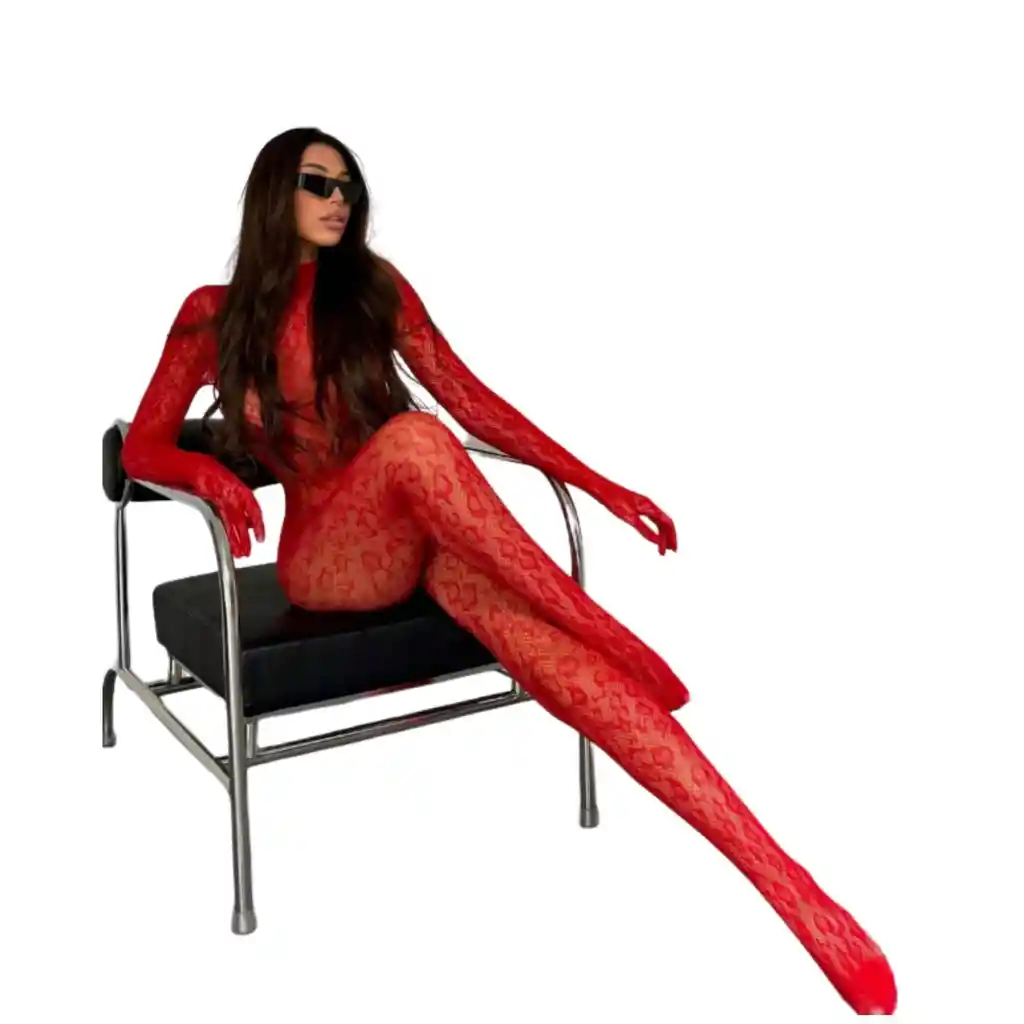 Body de red sexy para mujer, body ajustado de malla, lencería. olor rojo talla unica