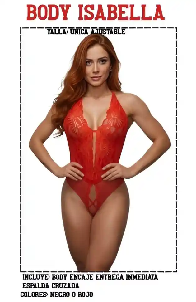 Ajuste Perfecto (Talla Única): Gracias a su diseño inteligente y materiales elásticos, se adapta armoniosamente a diferentes siluetas, eliminando las complicaciones de las tallas tradicionales. Encaje de Lujo: Confeccionado con un delicado encaje floral de textura suave que recorre todo el torso, ofreciendo transparencias sugerentes y elegantes. Espalda Cruzada: Su diseño de espalda descubierta con tirantes cruzados no solo es visualmente impactante, sino que permite un ajuste personalizado para mayor soporte. Corte Estilizador: El escote profundo en «V» y el corte de pierna alta alargan visualmente la figura, creando un efecto de máxima sensualidad. Especificaciones del Producto: Colores Disponibles: Rojo pasión y Negro clásico. Talla: Única Ajustable. Incluye: Body de encaje premium. Disponibilidad: Entrega inmediata para que no tengas que esperar.