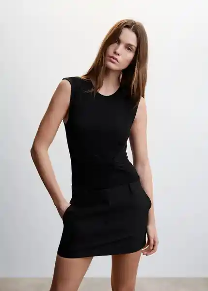 Cierre de Botones a Presión en la Parte Inferior Cuello Redondo Detalle Drapeado Detalle Nudo Diseño Entallado Tejido Elástico Tirantes Anchos - 47057847_99.