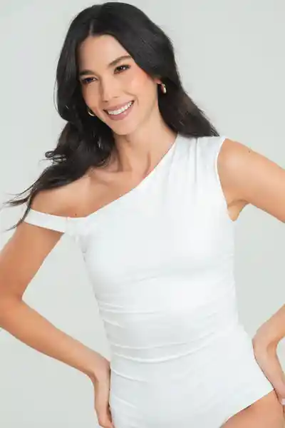 En Tejido de Punto Fondo Entero Escote Asimétrico Manga Corta Rodada Pieza Doble Recogido en Los Laterales Broche en la Parte Interna de la Tanga Silueta Ajustada