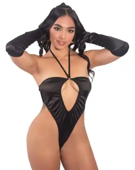 ¡Eleva tu sensualidad al máximo nivel! El body Andrea es una pieza de diseño vanguardista que combina el atrevimiento del corte high-cut con la elegancia clásica de los guantes de ópera. Elaborado en una exclusiva licra espejo, este traje captura la luz en cada movimiento, garantizando un brillo impactante y un ajuste que moldea tu silueta. Detalles que lo hacen único: Escote Gota Pronunciado: Un diseño halter con apertura frontal que realza el busto de manera sofisticada. Efecto Espejo: Material elástico de alta gama con acabado metalizado que ofrece una textura suave y un brillo de lujo. Guantes Largos Incluidos: Complemento de impacto que estiliza los brazos y añade un aire de misterio y elegancia. Espalda Descubierta: Corte minimalista en la parte posterior para resaltar la curva de la espalda y los glúteos. Corte de Pierna Ultra Alto: Diseñado para alargar visualmente las piernas y destacar las caderas. Especificaciones: Material: Licra Espejo (Premium Stretch). Color: Negro Onyx (Brillo Metálico). Talla: Única (gracias a la alta elasticidad de la licra, se adapta perfectamente a diferentes tipos de cuerpo).