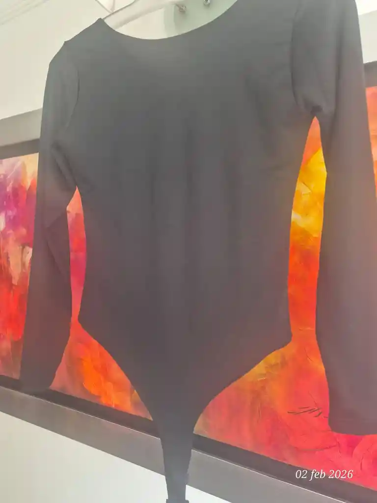 Body manga larga, cuello redondo, esperanza descubierta color negro