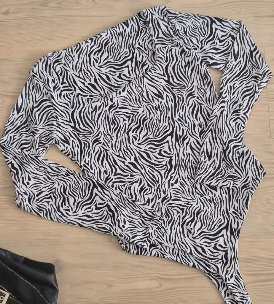 BODY MANGA LARGA, CUELLO CUADRADO, TALLA UNICA (XS, S, M, L) ANIMAL PRINT NEGRO Y BLANCO