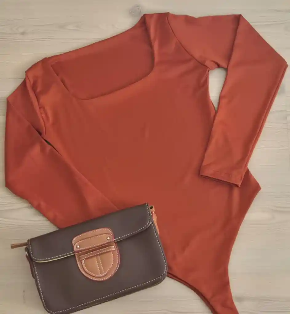 BODY MANGA LARGA, CUELLO CUADRADO, TALLA UNICA (XS, S, M, L) COLOR TERRACOTA