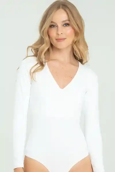 En Tejido de Punto Fondo Entero Escote en V Con Recogido Manga Larga. Silueta Ajustada.